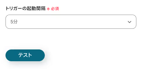 「トリガーの起動間隔」は5分、10分、15分、30分、60分の間隔で選択可能です。