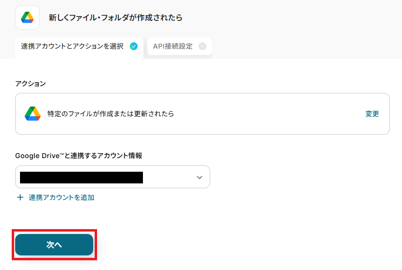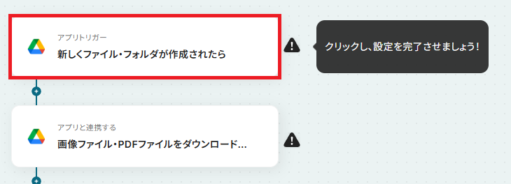 Google Driveのロゴの「新しくファイル・フォルダが作成されたら」をクリックします。