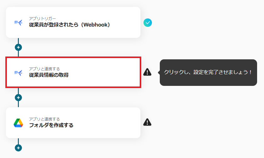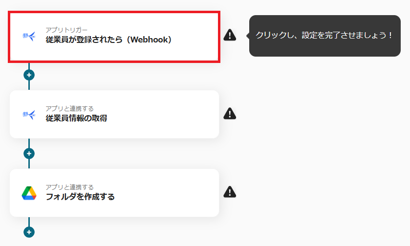 ・「アプリトリガー 従業員が登録されたら(Webhook)」をクリックします。