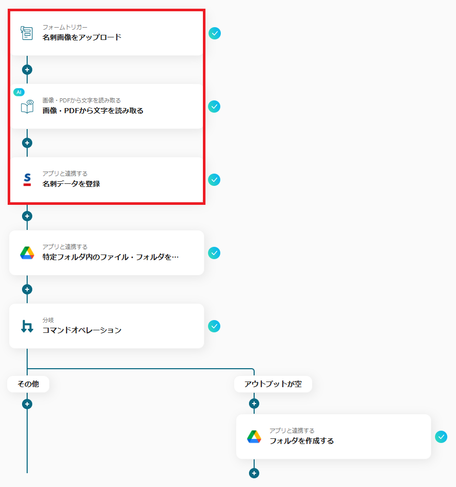ここでは、上記のテンプレートで名刺情報の登録も自動化するフローを紹介します。