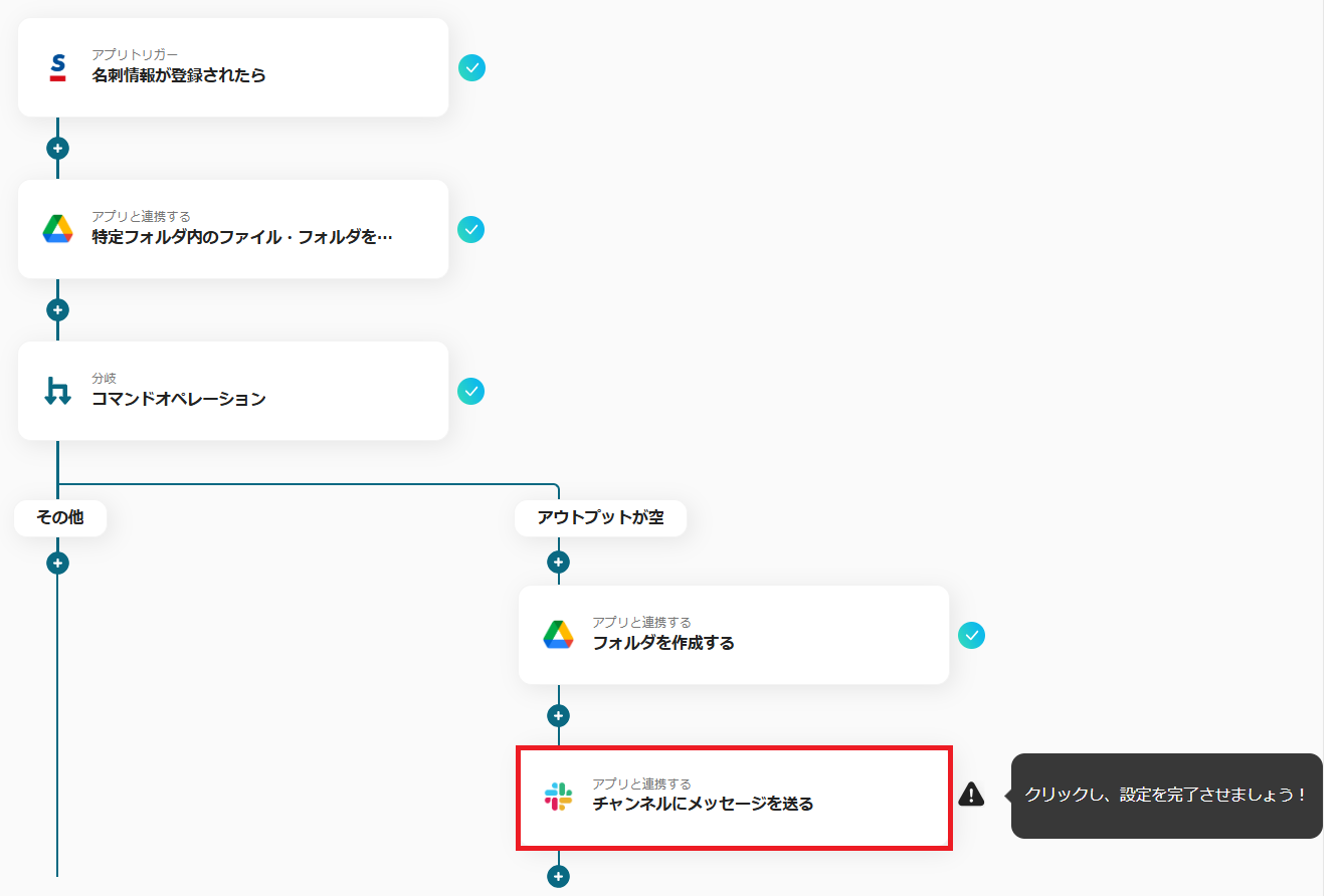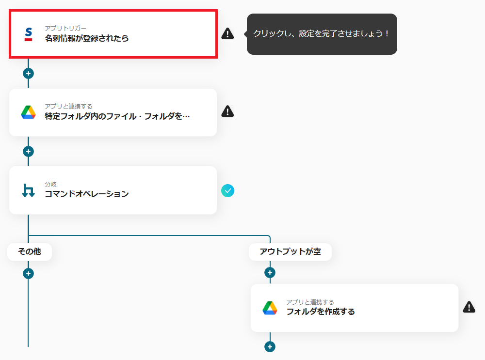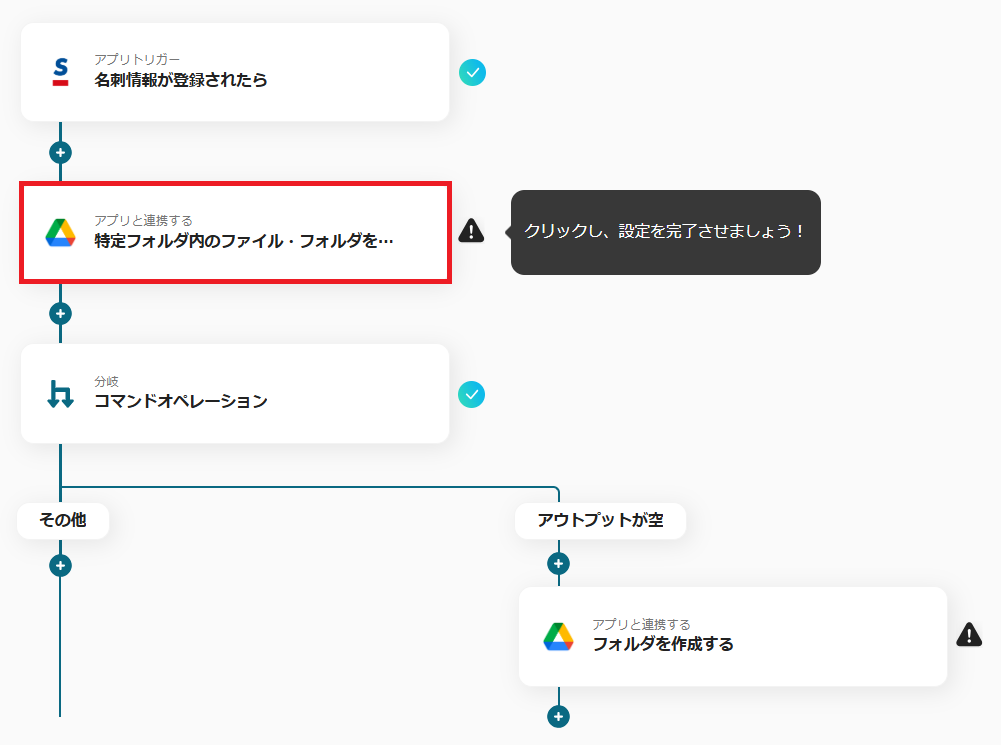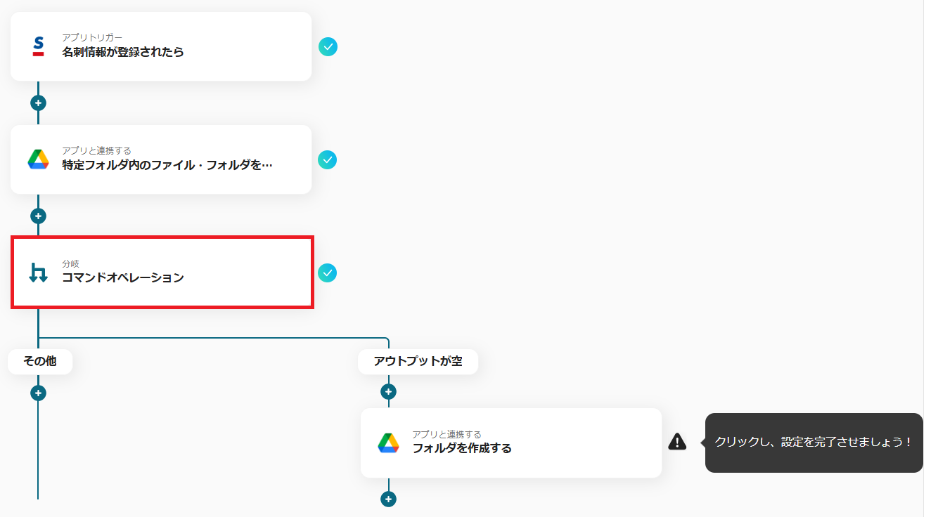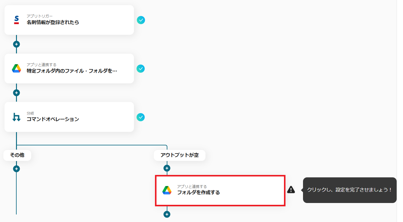 次に、Google Driveにフォルダがすでに作成されているかどうかを確認する設定を行います。