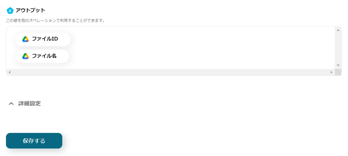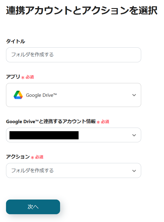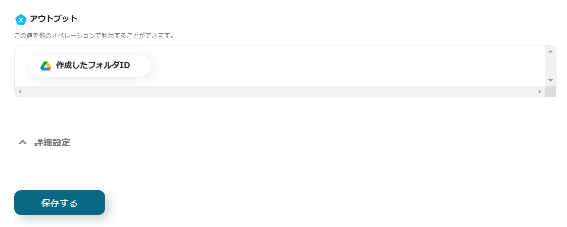 最後に、Google Driveにフォルダがない場合に作成する設定を行います。