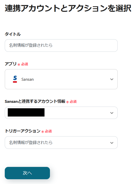 3.Sansanと連携するアカウントを確認し、「次へ」をクリックします。
