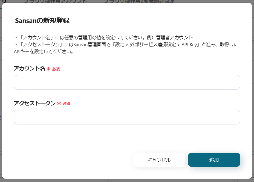 ・アカウント名とアクセストークンを入力し、「追加」をクリックすると、マイアプリに登録が完了します。