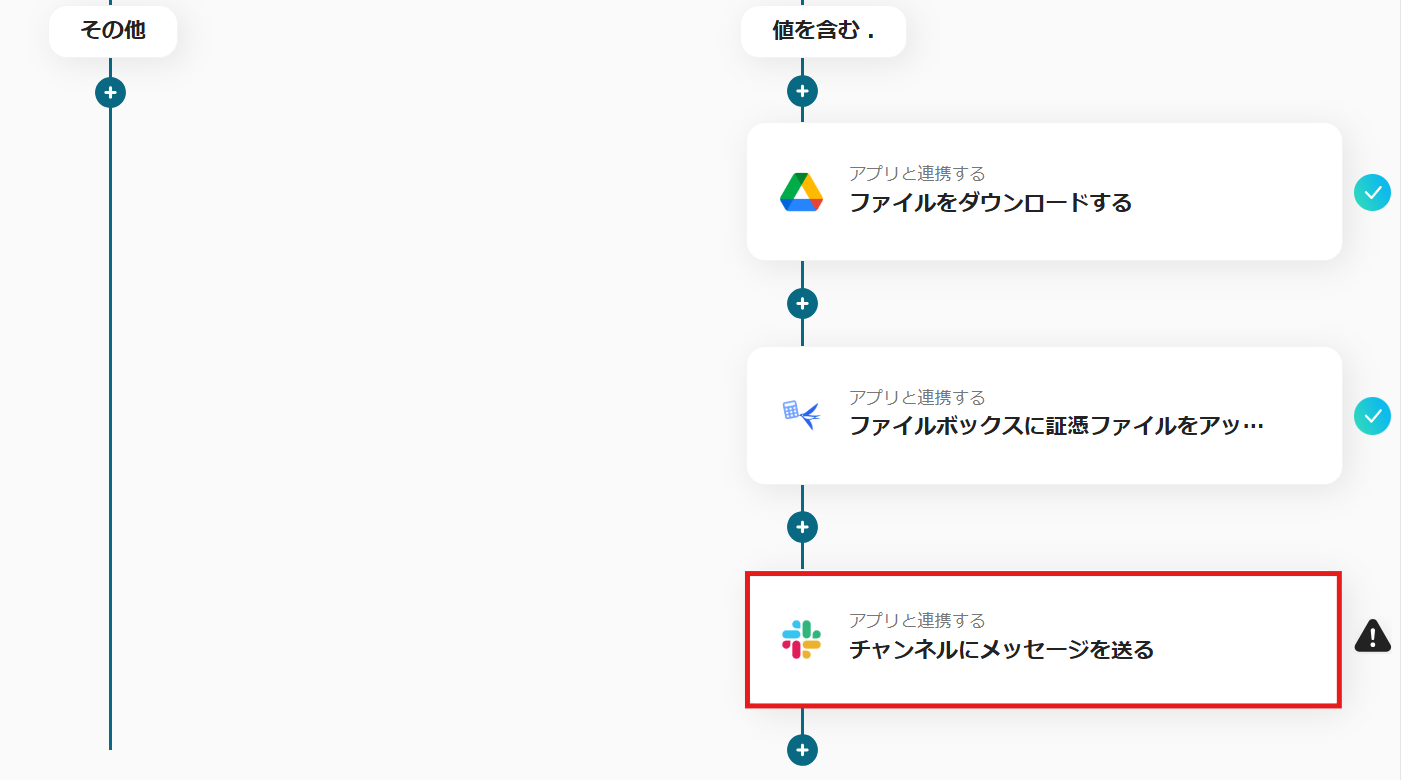 フローの最後にSlackへ通知するように設定すると、アップロード完了をチーム全員に通知できるようになります。
