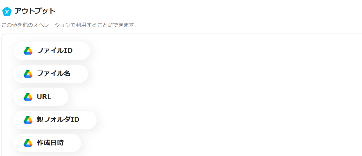 下記のアウトプットに項目の詳細が反映したら保存します。