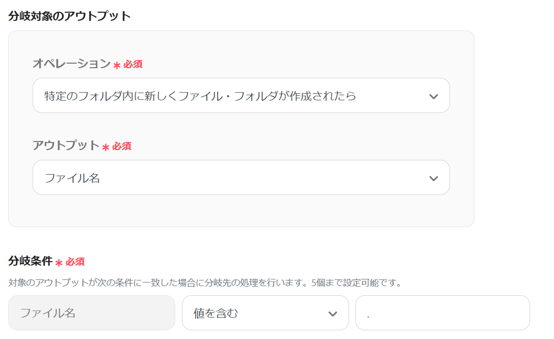 「特定のフォルダ内に新しくファイル・フォルダが作成されたら」を選択しましょう。