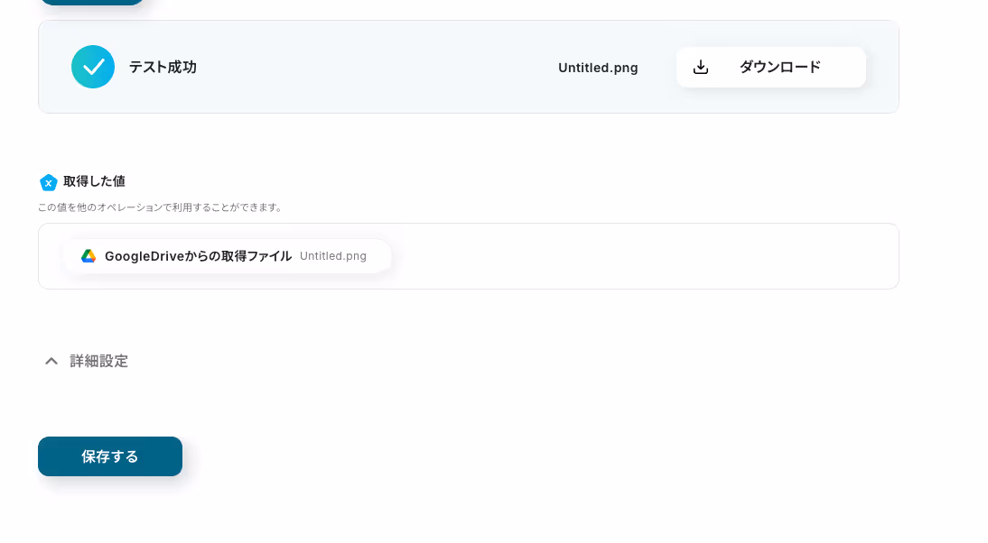 テストボタンを押し、青く「テスト成功」と表示がされたことを確認して『保存する』を押してください。