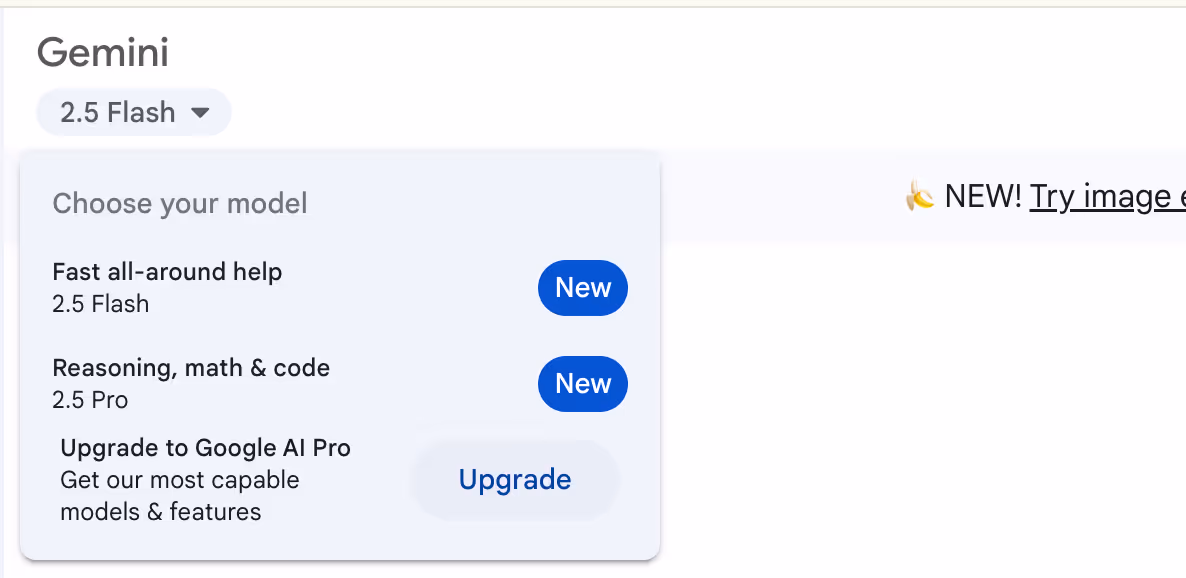 モデルについては、Geminiのページ左上をクリックすることで確認できます。