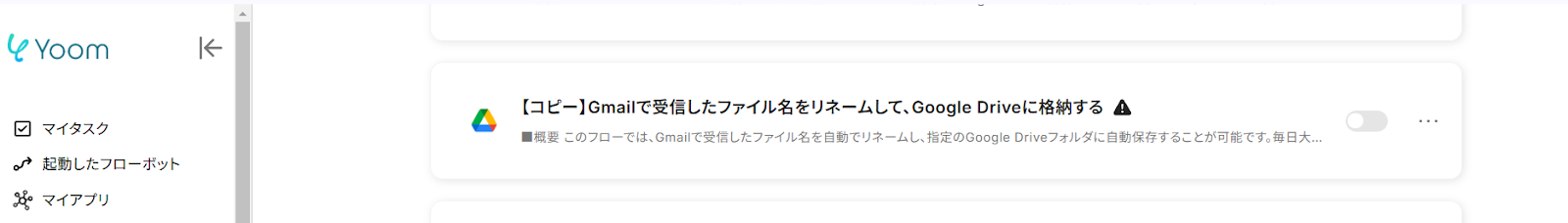 「【コピー】Gmailで受信したファイル名をリネームして、Google Driveに格納する」をクリックします。
