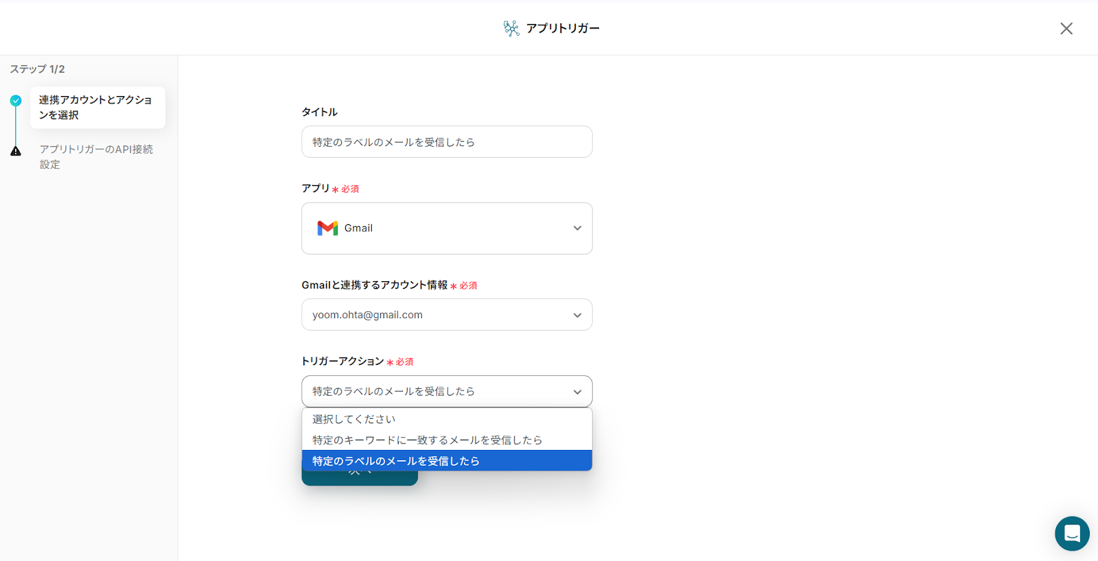 3.Google Driveの特定フォルダにファイルがアップロードされたら、そのファイルをGmailに添付して送付する