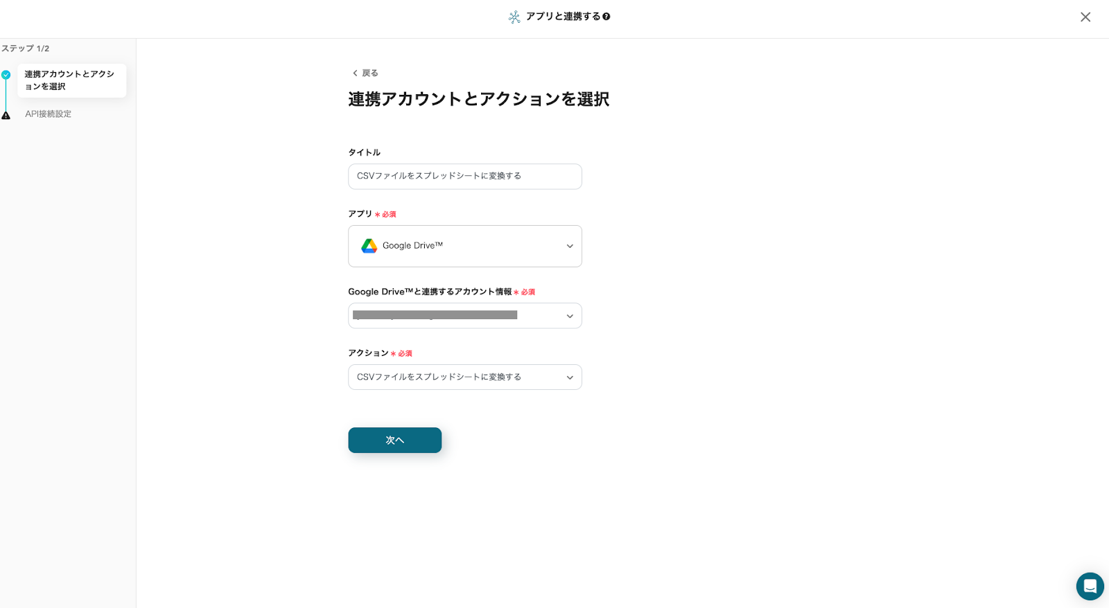次に、CSVをGoogle スプレッドシートに変換する設定を行います。