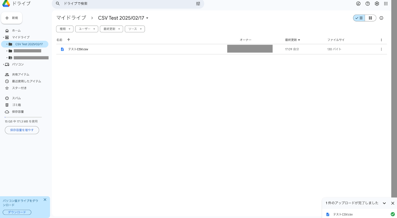 ステップ2. Google DriveにCSVがアップロードされたことを受け取る