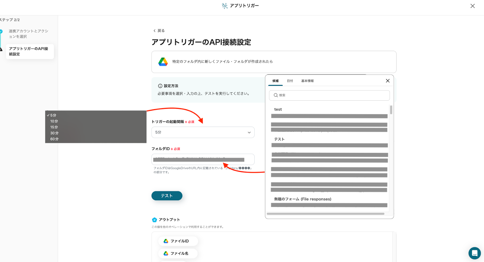 「フォルダID」は、任意で指定できます。今回はステップ2と同じフォルダIDを指定しました。