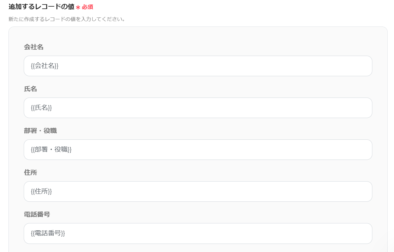次が最後の設定です!追加するレコードの値を設定していきます!