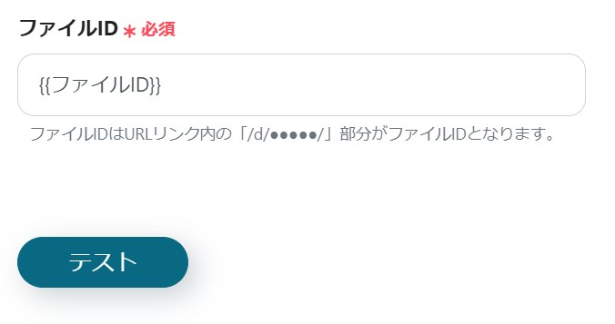 ファイルIDの入力をしますが、テンプレートを使用しているので既に設定がされている状態です。