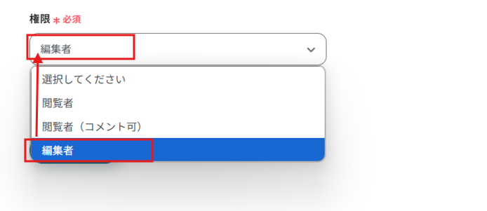 権限はプルダウンから選択できます。