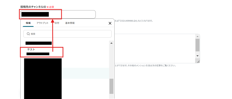 投稿先のチャンネルIDは候補から選択できます。