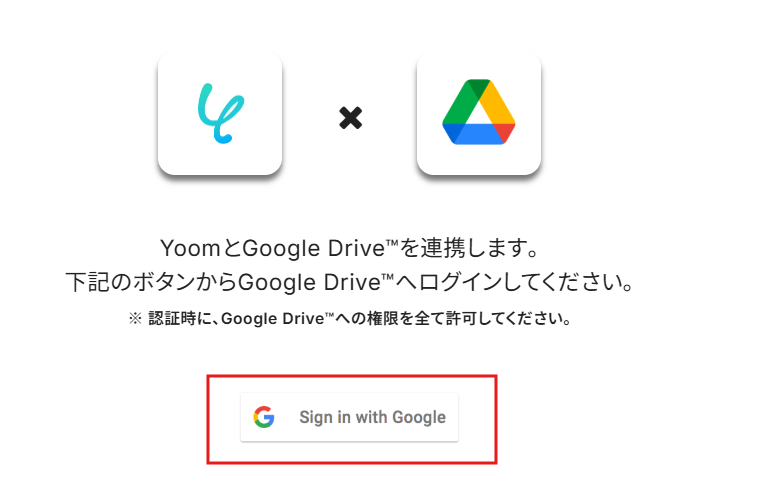 次にGoogle Drive のアプリ連携設定を行います。