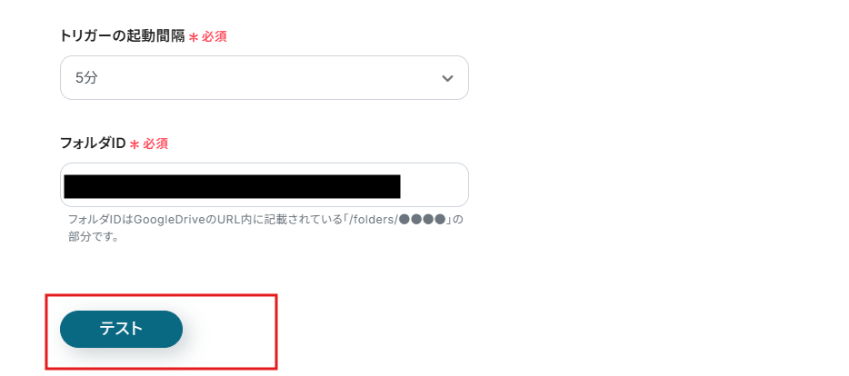 トリガーの起動間隔とフォルダIDを設定していきます。