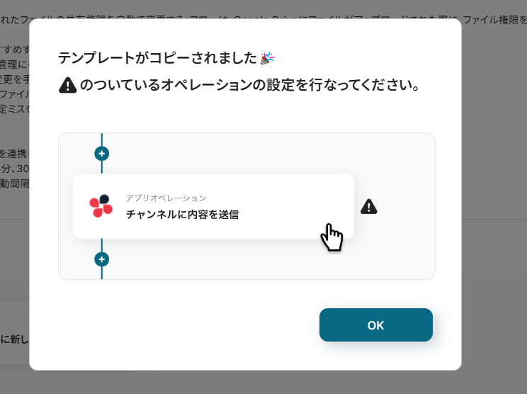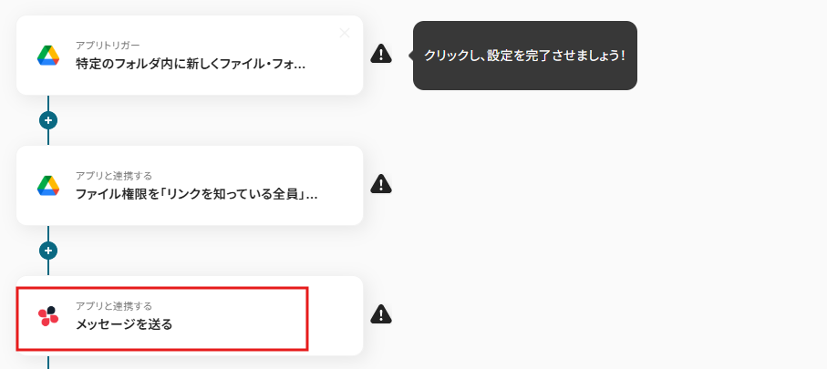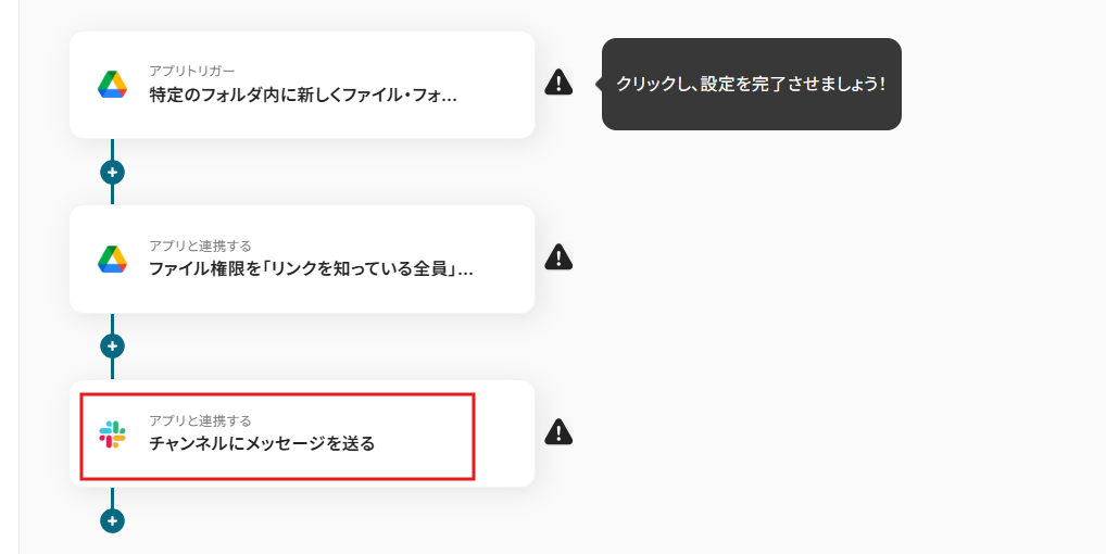 次にGoogle Driveに格納されたファイルの共有権限を変更したのちに、Slackに通知する方法をご紹介します。 社内でのやり取りがSlackという企業の方におすすめです。