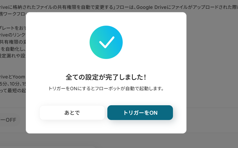最後に以下の画面が出てきますので右の「トリガーをON」をクリックしましょう。