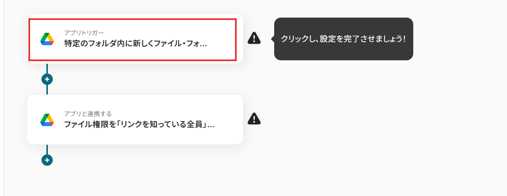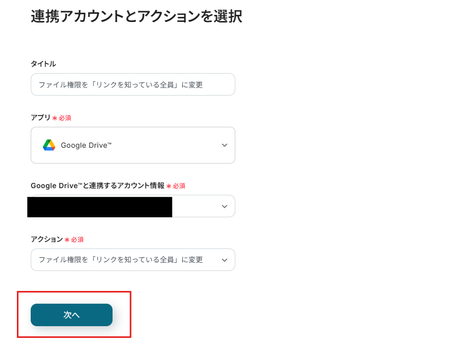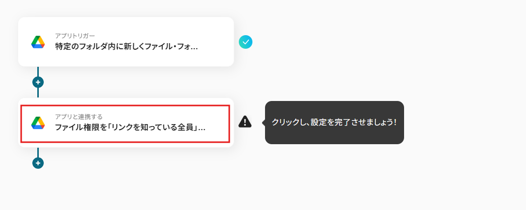 アクションを「ファイル権限を「リンクを知っている全員」に変更」に設定することで、 先ほど指定したフォルダにファイルがアップロードされると、ファイル権限が自動で「リンクを知っている全員」に設定されます。