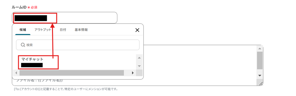 ルームIDやメッセージ内容を設定します。