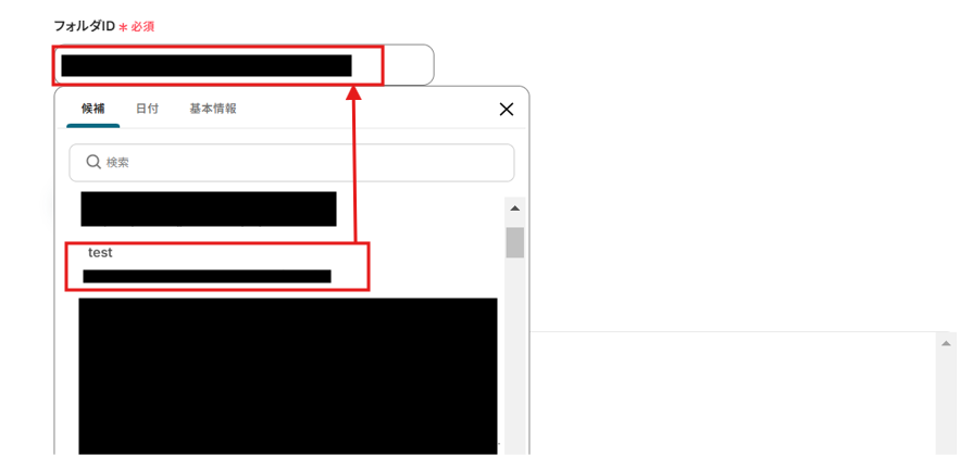 フォルダIDは以下候補から選択してください。 フォルダIDを指定することで、指定フォルダにファイルがアップロードされたら、フローが起動するようになります。