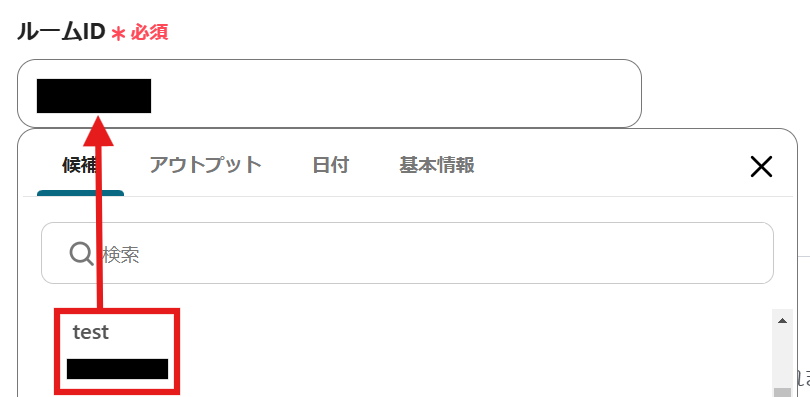 スクロールし、「ルームID」を候補から選択するか、説明に従って設定します。