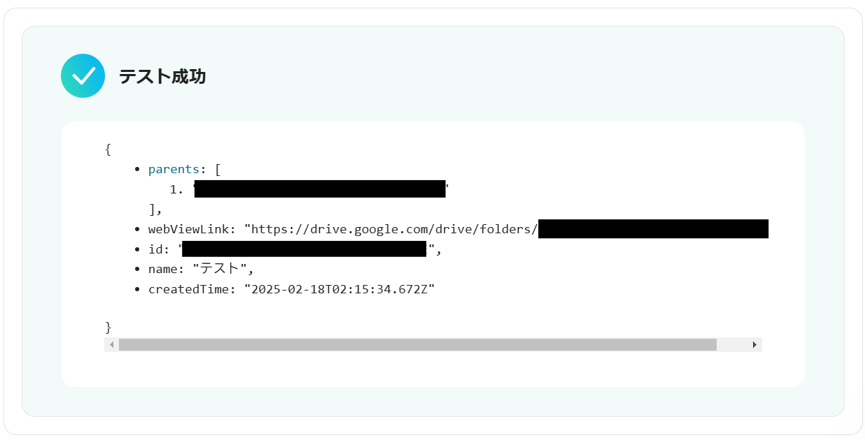 先ほど「特定のフォルダ内に新しくファイル・フォルダが作成されたら」で設定した情報が表示されます。