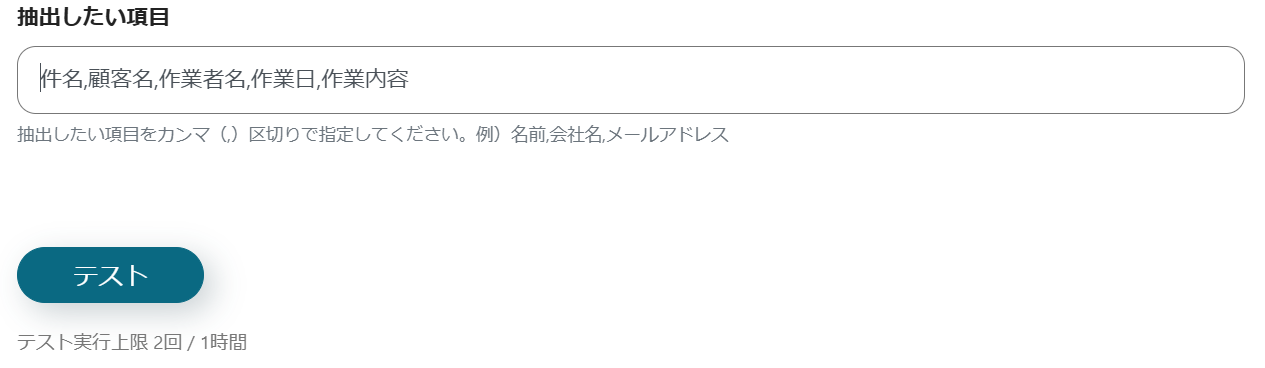 kintoneの画面に移動し、「抽出したい項目」で設定した項目名を以下のように設定しましょう。