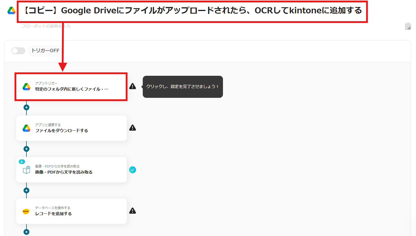 そんな問題を解決できるのが「Google Driveにファイルがアップロードされたら、OCRしてkintoneに追加する」という自動化です。