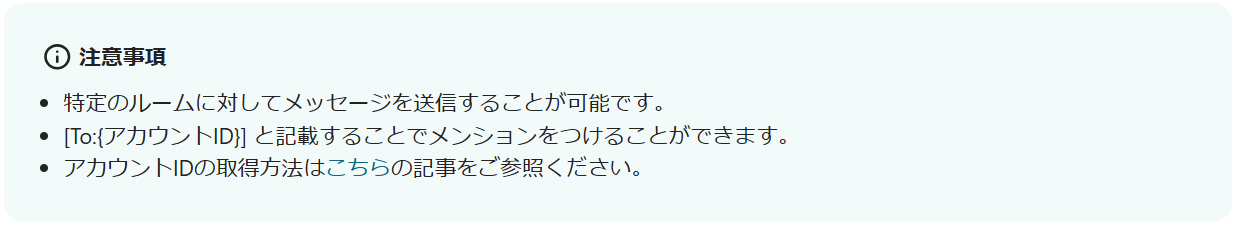 メンションをつけたい方は、こちらからアカウントIDの取得方法を確認しましょう。