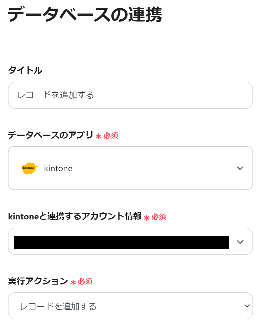 続いて、kintoneに取得したファイル情報を追加する設定を行うため、「レコードを追加する」をクリックします。