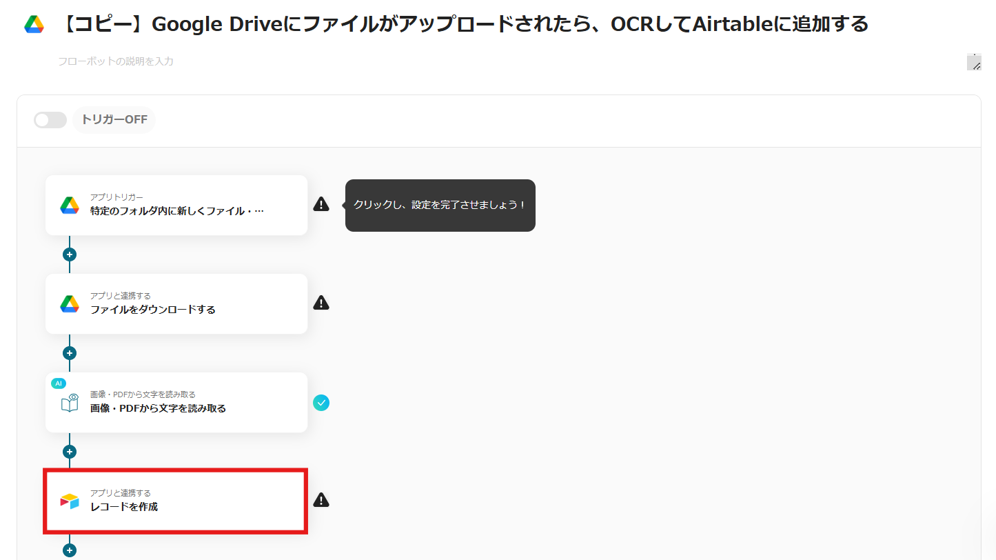 続いて、「Google Driveにファイルがアップロードされたら、OCRしてAirtableに追加する」方法をご説明します。