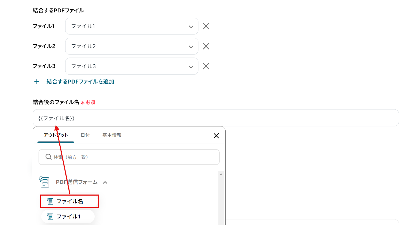結合後のファイル名は、以下の画像のようにフォームで送信されたファイル名を引用しています。