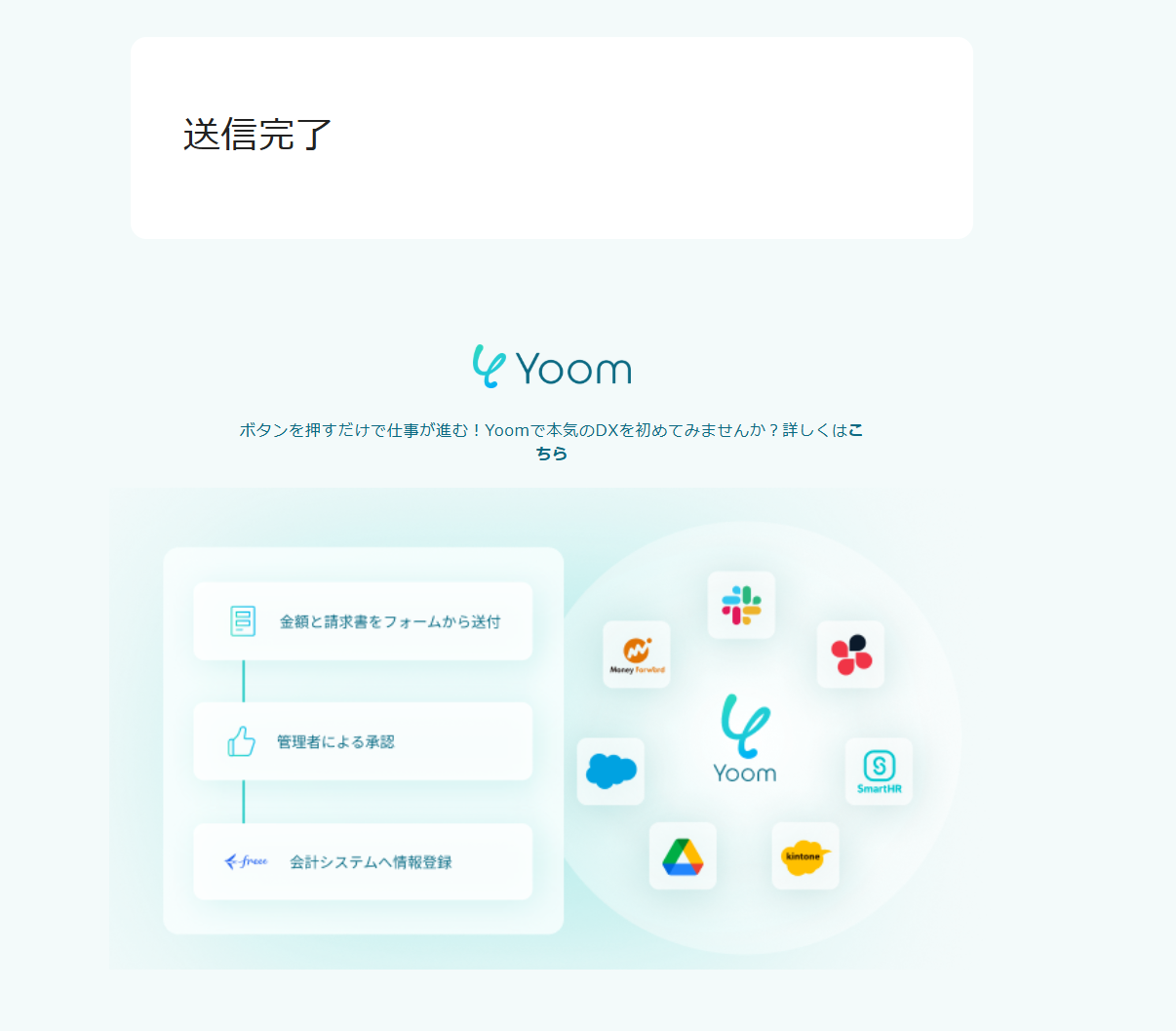 完了ページをクリックすると以下の画像のように送信後のプレビューが表示されます。