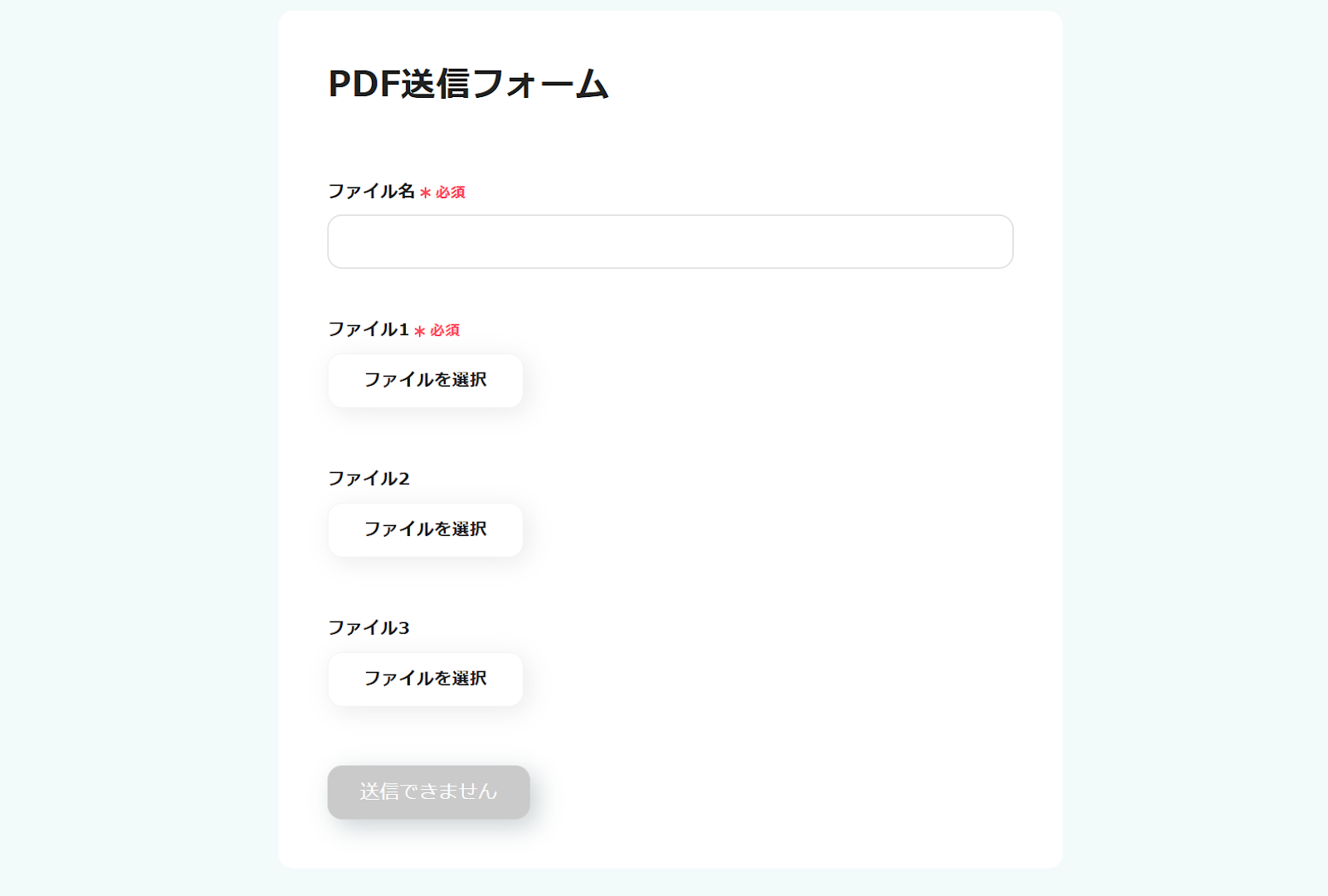 デフォルトでは、ファイル名をつけられ、PDFを3つまで添付できるようになっています。