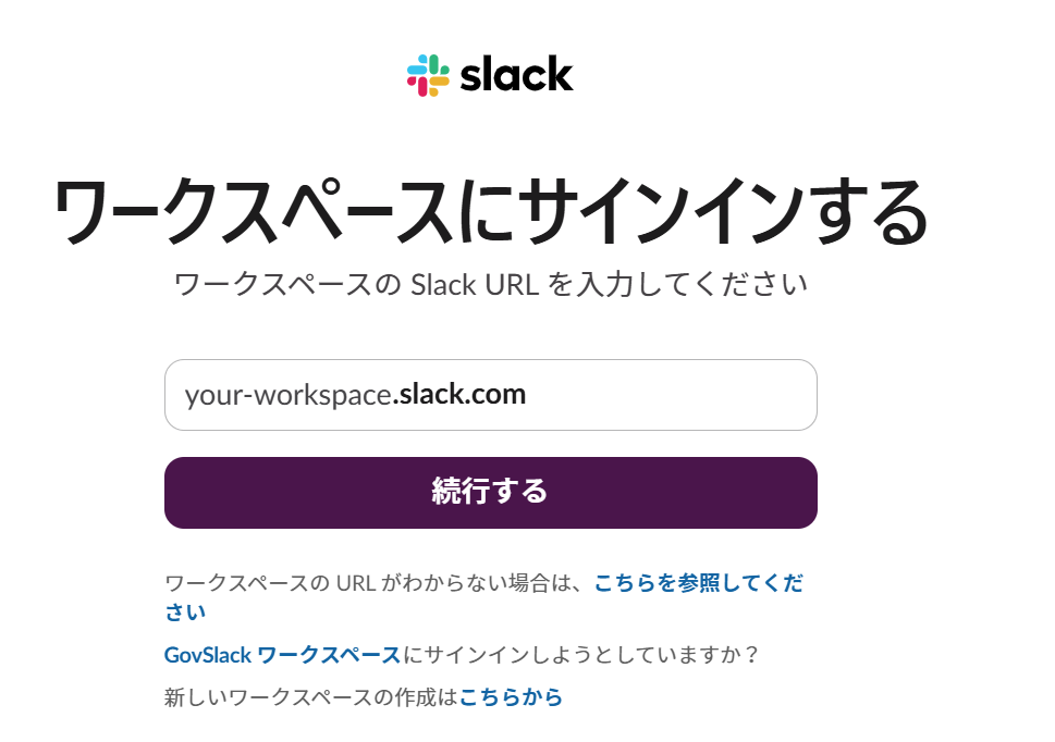 ワークスペースのURLを入力してください。