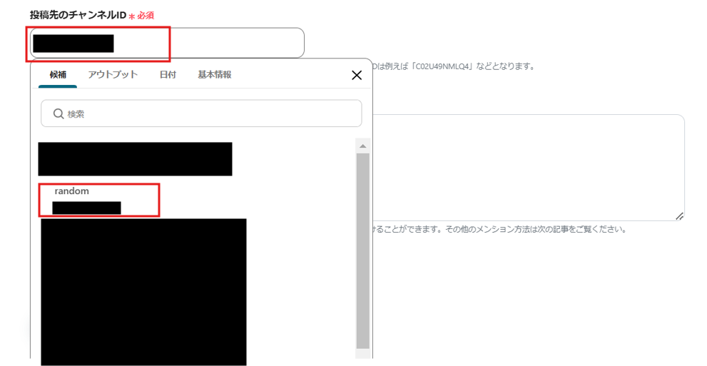 投稿先のチャンネルIDは、候補から選択しましょう。