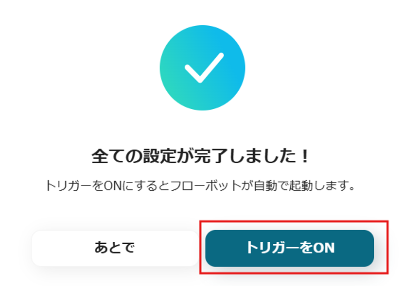 「トリガーON」をクリックして、自動化の確認を行いましょう!