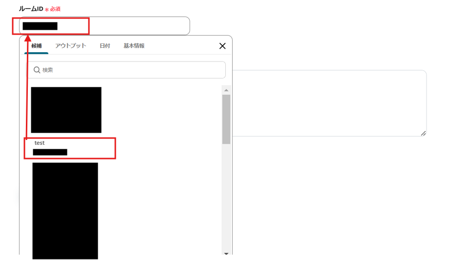 通知先のルームをのIDを候補から探しましょう。