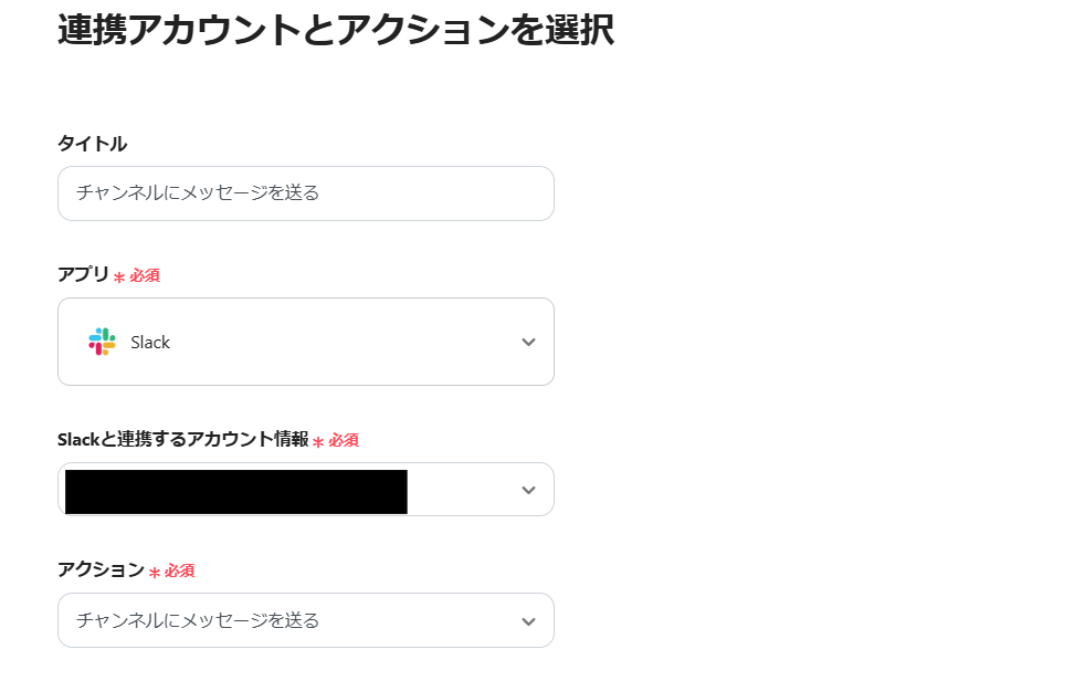次に連携アカウントとアクション設定です。