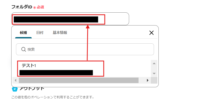 フォルダIDは、候補から入力してください。