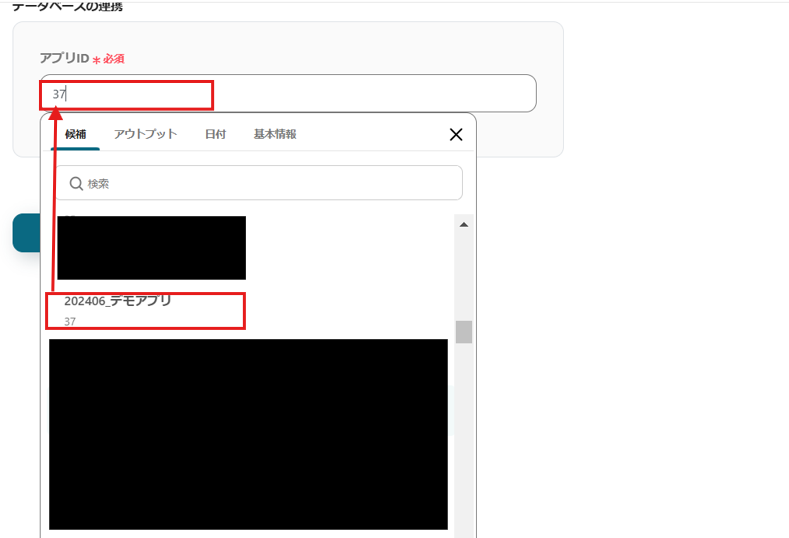 「データベースの連携」の「アプリID」は候補から選択してください。