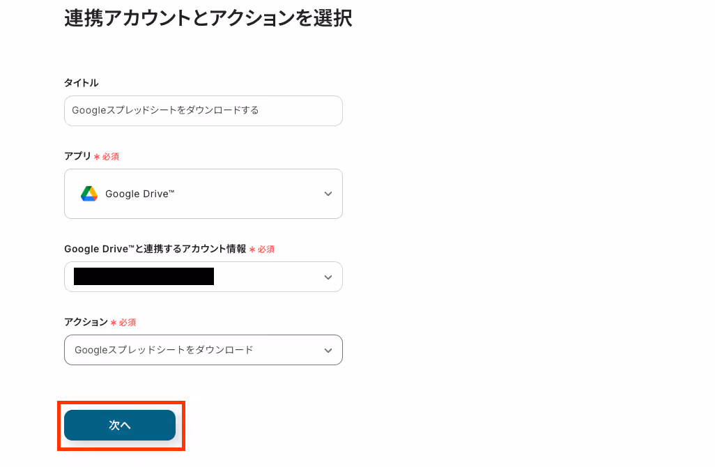 次は「Google スプレッドシートをダウンロードする」の設定を進めていきます。
