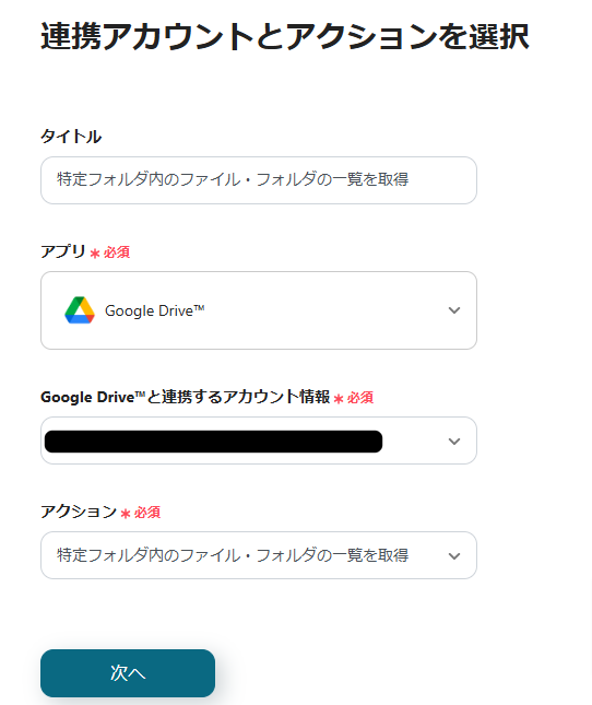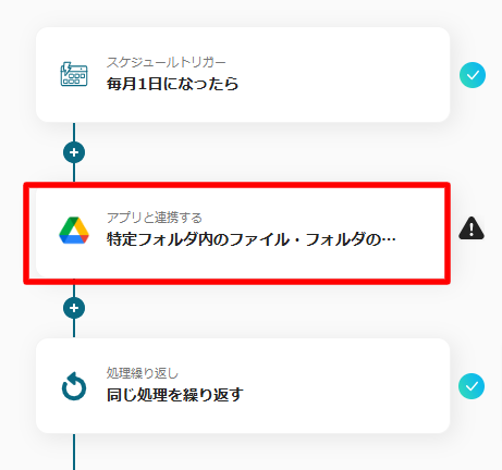 続いての設定は「特定フォルダ内のファイル・フォルダの一覧を取得」です。
