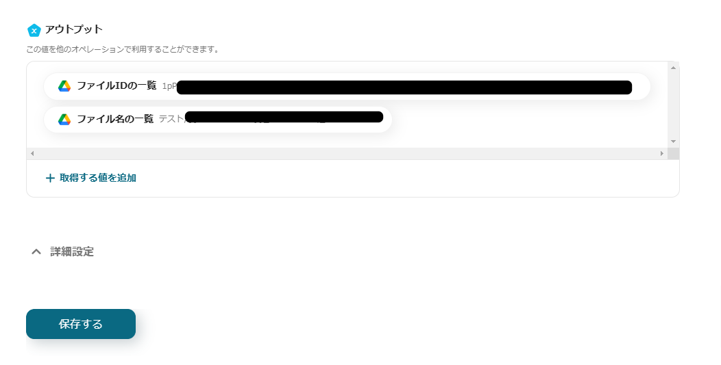 確認ができたら「保存する」をクリックして、フォルダ情報取得の設定は完了です。