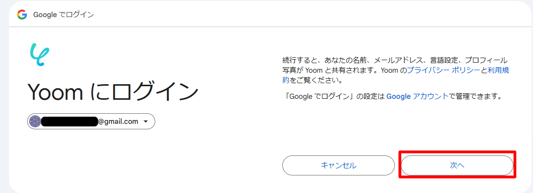 アカウントの選択をしたら、次のように進んでください。